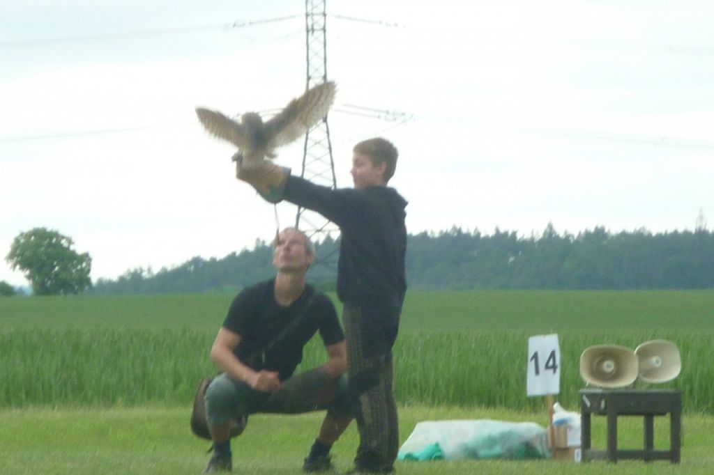 Dalším překvapením byl Zayferus, který přivezl 25 dravých ptáků. Viděli jsme létat 4. Největšího orla na světě - orla bělohlavého. Jeho rozpětí křídel 2,5m bylo prostě úžasné! Děti zaujalo nejvíce karančo jižní, které nelétá, ale poskakuje. Nebezpečný let supa krahujového mezi přihlížející byl rovněž nezapomenutelný. Děti odpovídaly na otázky ornitologů a dostávaly odměny jako pexeso, vstupenky do lednického zámku, leporelo apod.