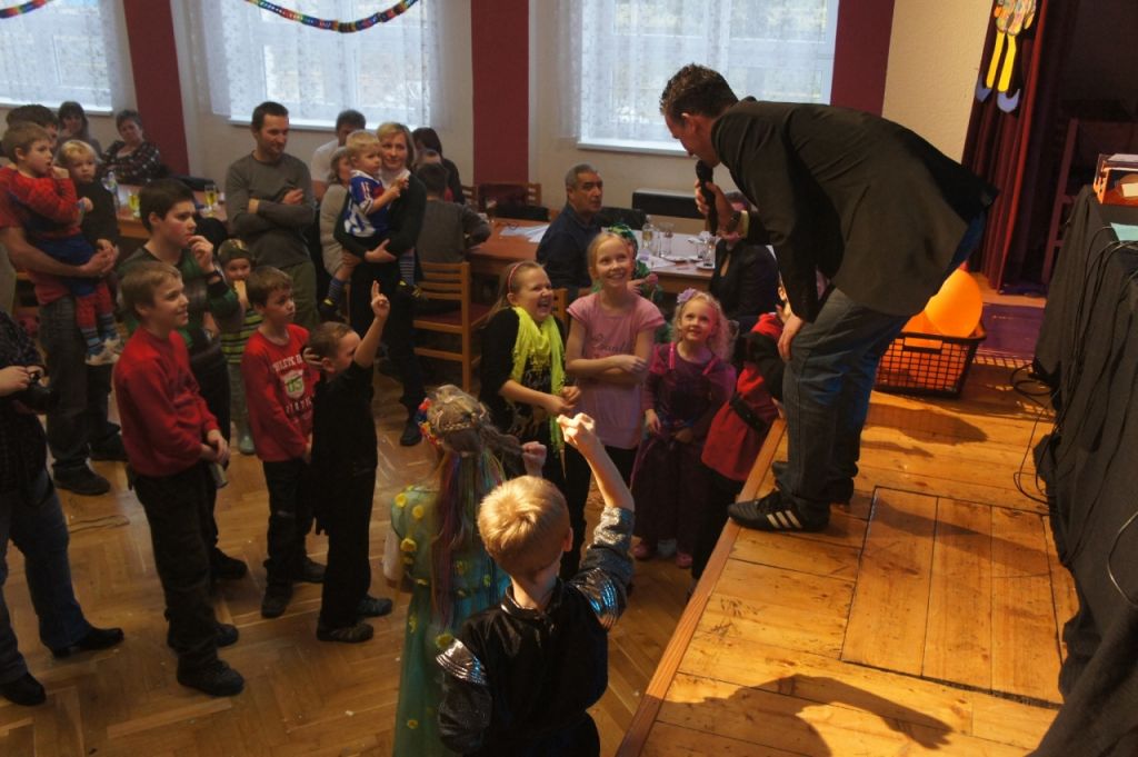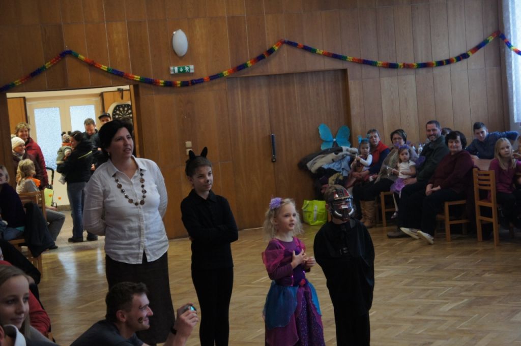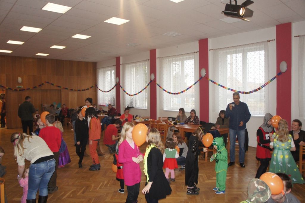 Maškarní průvod se vydal po sále kulturního domu v Horních Dubňanech 16. února 2014 v 15:00 hodin. Masky se předvedly v plné parádě! V zářících dětských očích jsme četly velké očekávání. Doufám, že jsme je splnily. Vašek se z pódia ujal svého úkolu a ihned děti i dospělé zapojil do soutěží a her za drobné sladké odměny. Vrcholem byla samozřejmě židličkovaná, kde sváděli velký boj s plným nasazením holky proti lukům a po té i maminky a taťkové. K tomu všemu dovádění pouštěl náš slavný dižokej Matěj Kotrnec veselé melodie a kolem zazníval smích přítomných. Během celého odpoledne bylo zajištěno občerstvení a nechyběl ani skákací hrad. Všechny děti si odnesly výhry a snad odcházely tak neradi, jako my, pořadatelé. Děkujeme všem za účast. Snad jste s námi strávili fajn odpoledne.