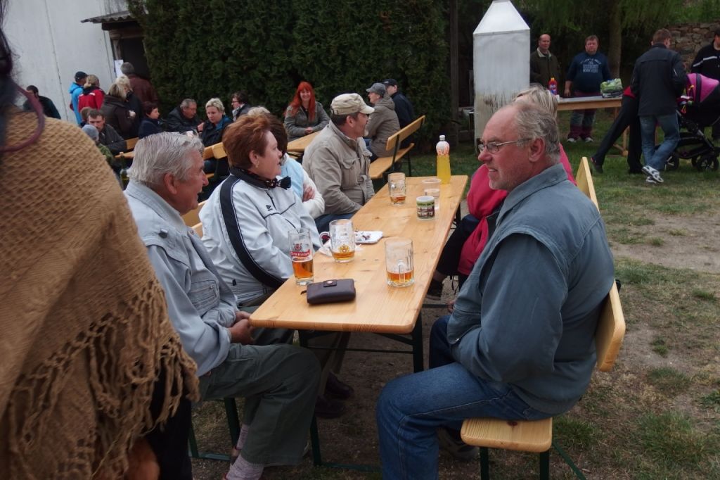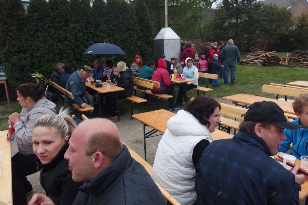 Čarodějnický rej nám letos ve čtvrtek 30.4.2015 začal již v 16:00 hodin odpoledne prodejní výstavou jarních kytek, věnečků, andělíčků a svíček. Nechyběla ani ochutnávka dobrého kouzelného vína. U rybníku bylo posezení, kde jsme ochutnali uzenou makrelu a cigáru. Zapili pivkem a děti limčou. Společně jsme poseděli, poklábosili a ani studený vítr a občasný déšť nás nerozehnal.
