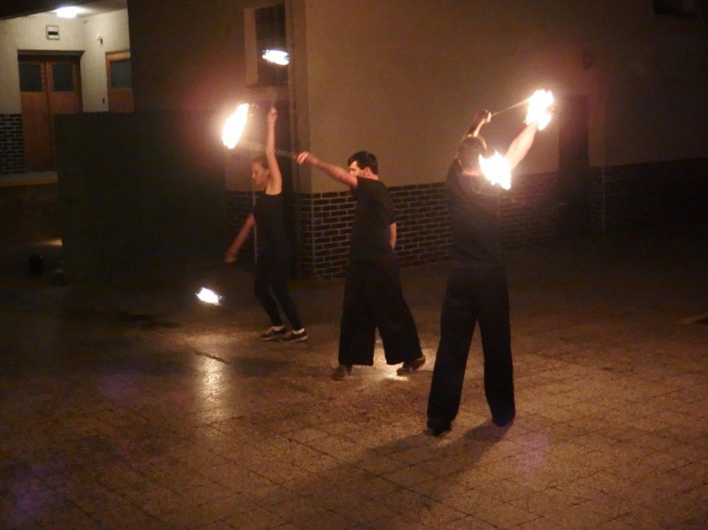 Když se večer v úterý 27.10.2015 setmělo, sešli jsme se s lampiony u Čurdových. Světýlka svítila do tmy jako bludičky a my se vydali z kopce dolů k pomníku padlých. Byly jsme jako hejno světlušek, které se přemístilo na terasu k hospůdce. Odtud jsme sledovali šikovné ovladače ohně, kteří vykreslovali kolem sebe ohnivé obrazce a tančili spolu s ohněm za zvuku hudby. Ohnivá show se nám líbila a za svitu měsíce v úplňku neměla chybu.