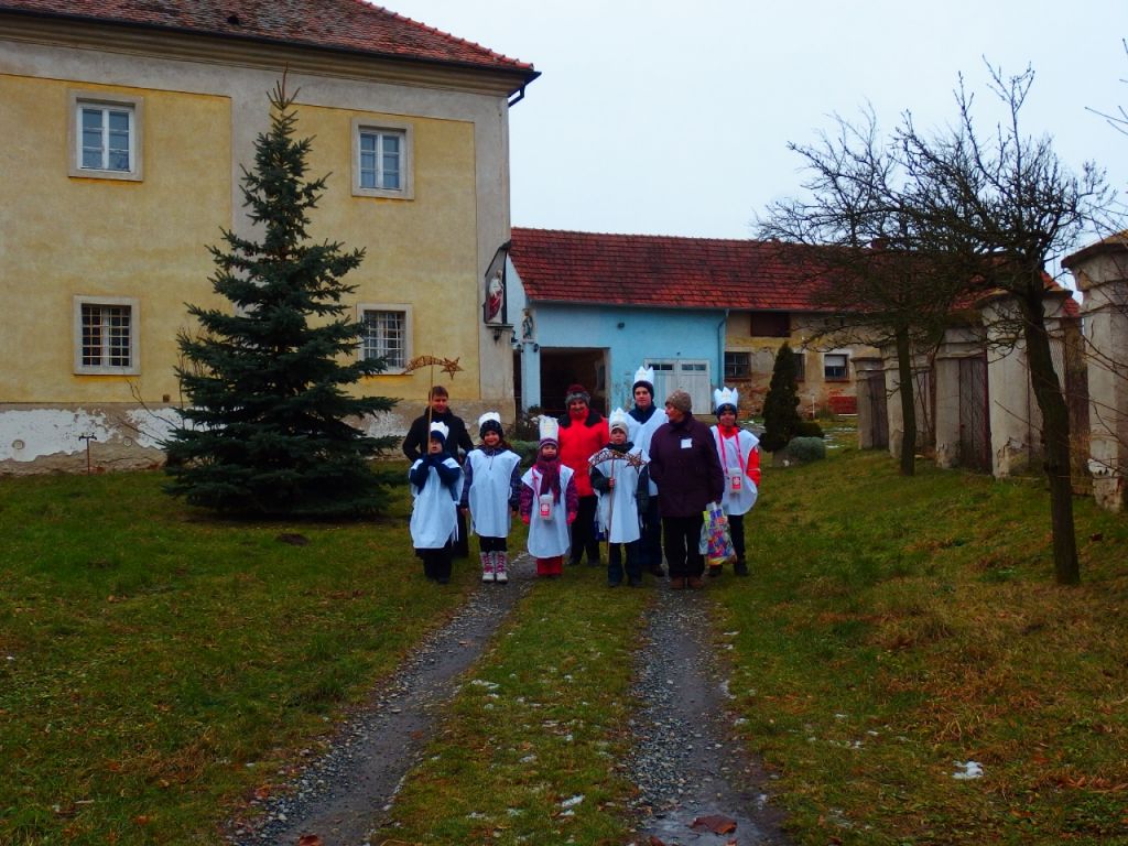 Jako vždy i letos chodily dvě skupiny koledníků. V jedné to byli tři brášci Čurdovi – Peťa, Áda a Honzík. V druhé pak Verunka Čurdová, Terezka Hušková a Pepík Buchtela. S první skupinou letošní rok chodil i pan farář. Pozdravil se s dárci, požehnal jim i jejich domovům a to bylo moc pěkné.