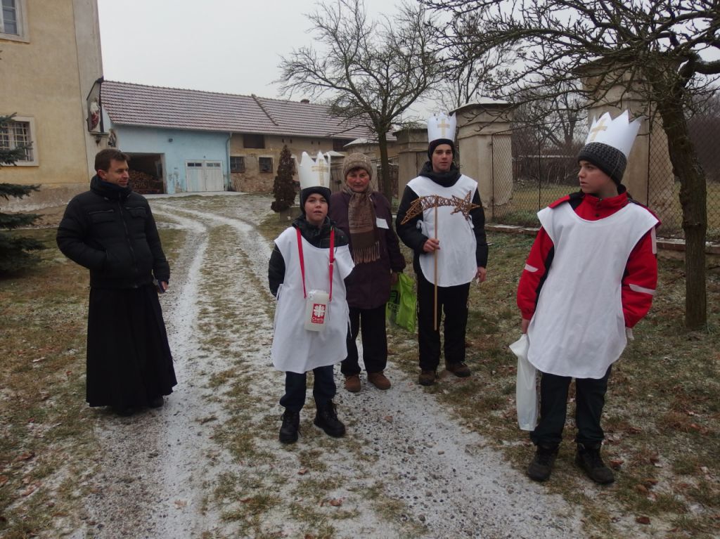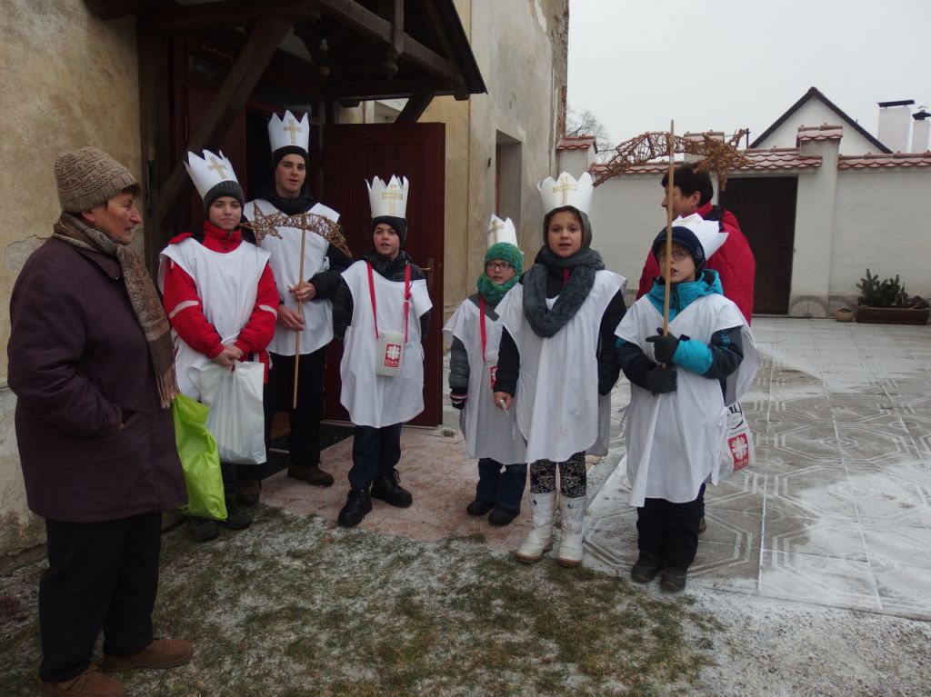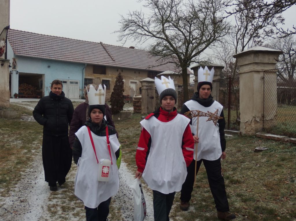 V sobotu 2. ledna ráno přišli všichni naši koledníci do kostela, kde jim pan farář požehnal na tříkrálovou cestu po naší obci. A hned po obědě vyšly obě skupinky, aby oslovily všechny lidi dobré vůle. V jedné skupince byli tři brášci Čurdovi – Peťa, Adam a Honzík. Ve druhé pak Verunka Čurdová, Terezka Hušková a Pepík Buchtela. S jednou skupinkou chodil i pan farář. Pozdravil se s dárci a popřál jim vše dobré do dalších dní. Výnos sbírky v naší obci pro lidi v nouzi činil 10.065 Kč. Na Znojemsku bylo vykoledováno téměř 2 mil. Kč, oproti loňsku to byl nárůst o 150.000 Kč. Sbírku počítala Oblastní charita Znojmo ve spolupráci s místní farností a Obecním úřadem.
