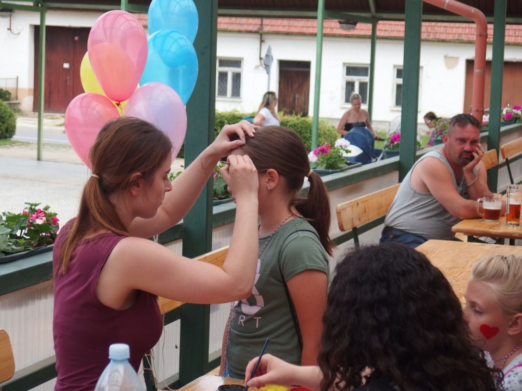 Dětský den v Horních Dubňanech se nám vydařil! Sešli jsme se malí, velcí i dospělí již tradičně na terase, kde 2.6.2018 dostali všichni na krk cedulku s čísly stanovišť, kde se plnily různé úkoly a dostávala odměna. Směr si každý zvolil dle svého. Skákal se panák, střílelo ze vzduchovek, tetovalo se, malovalo na obličej, učili jsme se čistit správně zoubky, házeli na terč, šipky, stříleli z luku, učili se třídit odpad, jezdili s kotouči i na kotouči, chytali rybičky, poznávali zvířata a ptáky, motali hadice a stříkali na plechovky, svezli se na motokárách, překonávali překážky atd atd. Bylo to super! Byli jsme příjemně znaveni a občerstvení , limonádka i ledňák v hospodě, všem určitě přišel vhod. Na sále pak proběhlo na závěr vystoupení dětí z taneční školy. Kdo chtěl, dále poseděl, kdo nechtěl, odcházel domů vyčerpán ze sluníčka i z tůry přes kopec.