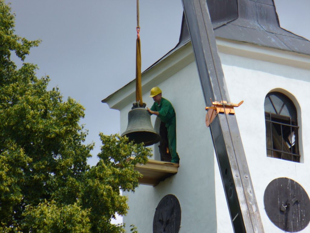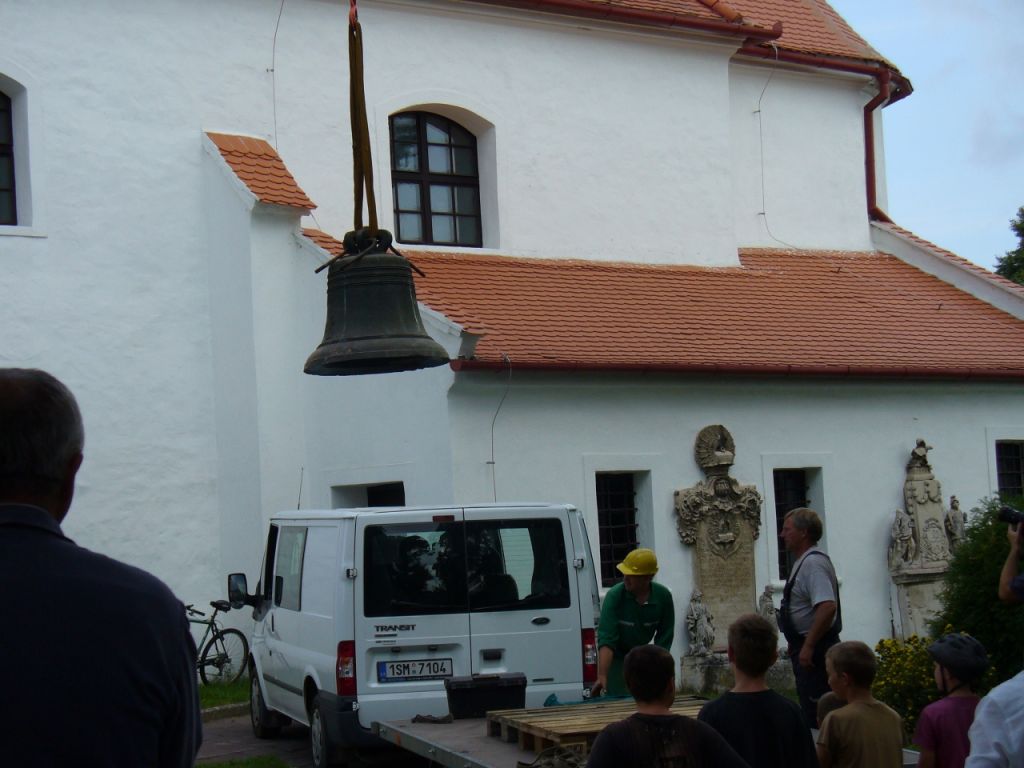V pátek 5.8.2011 byly kostelní zvony sundány a odvezeny k opravě.